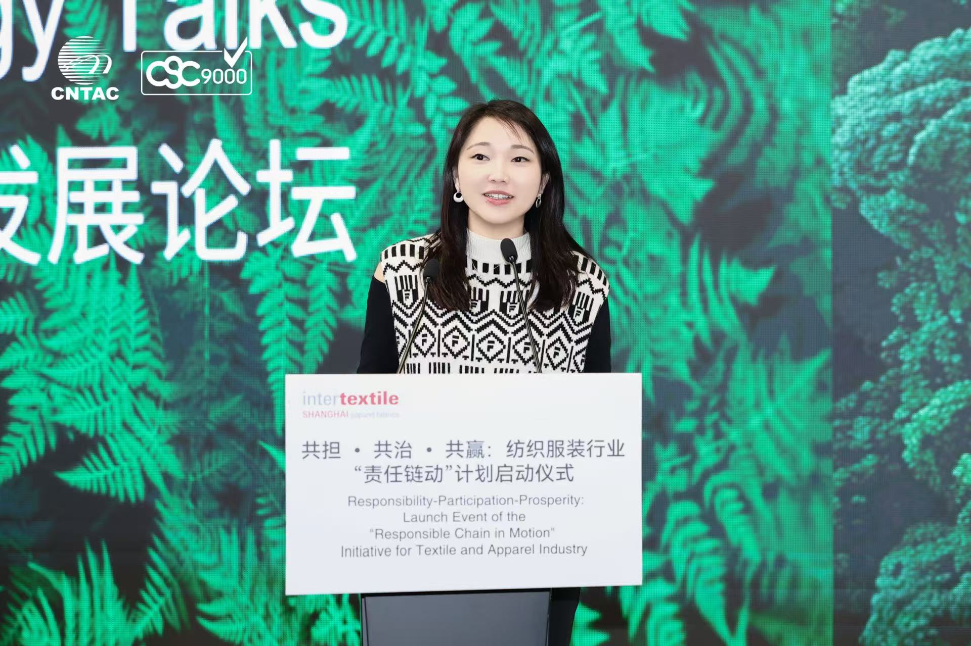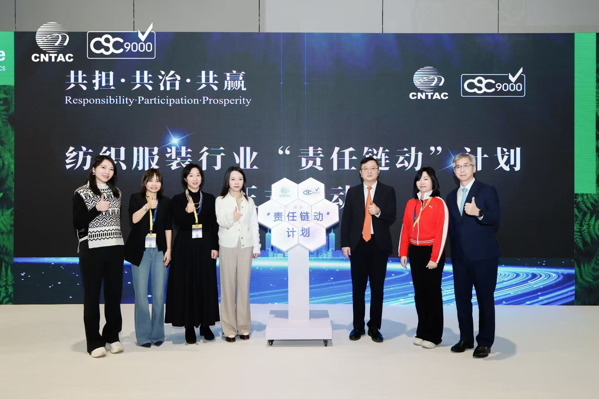 Amid enthusiastic applause, the launch event of the “Responsible Chain in Motion” Initiative was held with great fanfare. Mr. Hu Song, Director of the China Textile Information Center; Ms. Suki Wong, Senior Director of Corporate ESG & IR at Anta Sports; Ms. Erin XU, Vice President of Partnership and Public Affairs at H&M; Ms. Cuidan Cen, China Manager of the Social Impact Department at MANGO; Ms. Sabine Li, Head of Sustainability at PUMA; Ms. Becky Chen, CSR Expert at HEMA, and Mr. Hong LEE, Director of East Asia & Pacific at amfori—these seven guests took the stage together to complete the full vision of “Responsibility-Participation-Prosperity,” marking the official launch of the “Responsible Chain in Motion” Initiative for the textile and apparel industry.